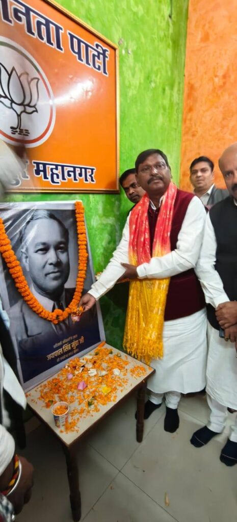 जमशेदपुर : पूर्व केंद्रीय मंत्री अर्जुन मुंडा ने शनिवार को जमशेदपुर स्थित पार्टी के महानगर पार्टी कार्यालय में झारखंड आंदोलन के अग्रणी नेता और संविधान सभा के सदस्य मरांग गोमके जी की जयंती के अवसर पर उनके चित्र पर पुष्प अर्पित कर श्रद्धापूर्वक नमन किया।
