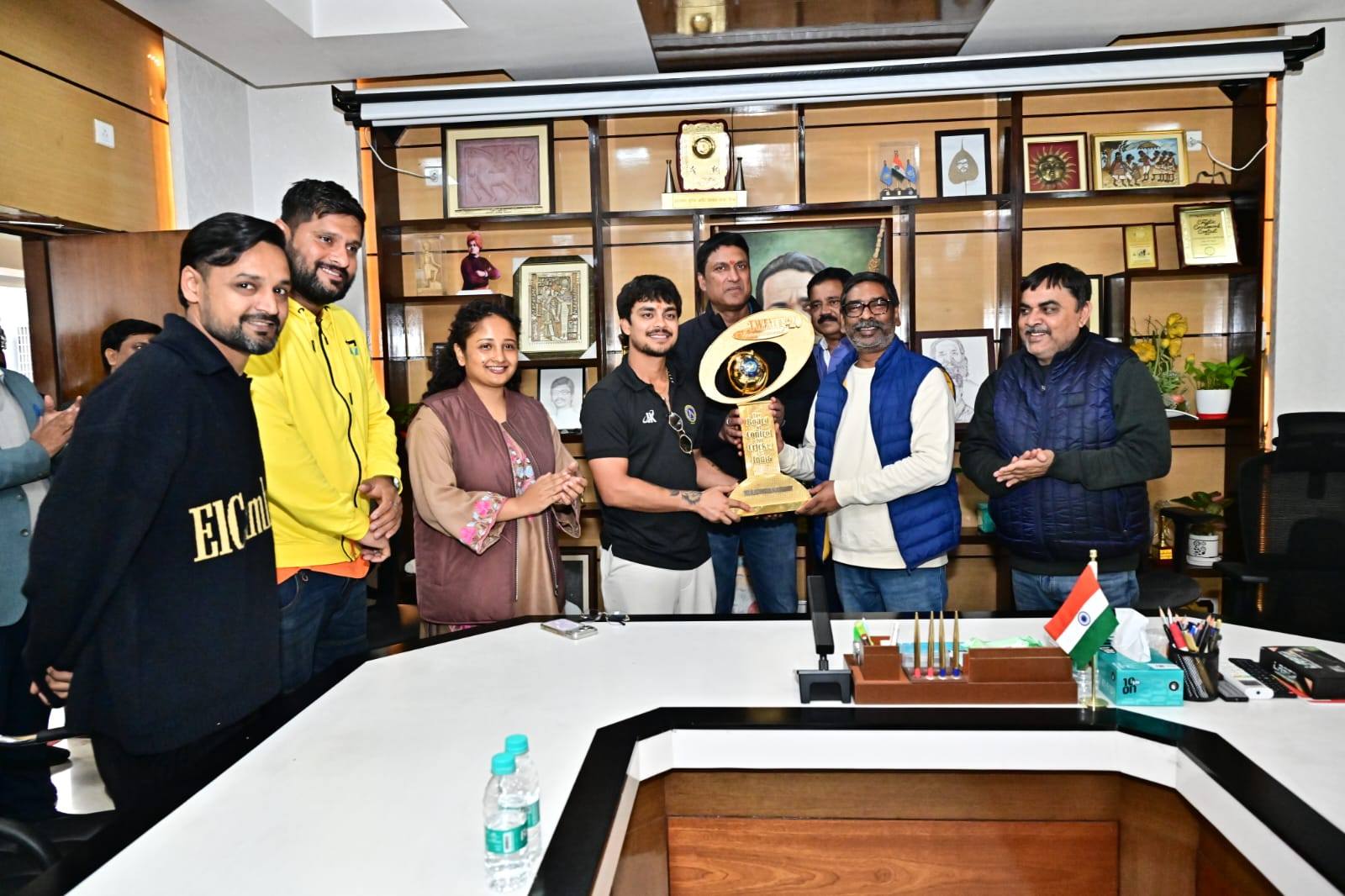 रांची : मुख्यमंत्री हेमंत सोरेन ने शुक्रवार को सैयद मुश्ताक अली टी20 ट्रॉफी जीतकर इतिहास रचने वाली झारखंड क्रिकेट टीम से मुलाकात की और उन्हें सम्मानित किया। इस मौके पर हेमंत ने कहा कि यह उपलब्धि खिलाड़ियों की मेहनत, अनुशासन और टीम भावना का परिणाम है।