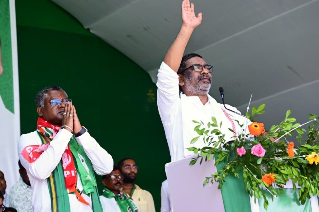 घाटशिला में आयोजित नामांकन सभा में मुख्यमंत्री हेमंत सोरेन ने गठबंधन प्रत्याशी सोमेश सोरेन को जिताने का किया अनुरोध