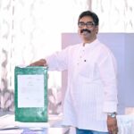 रांची : झारखंड विधानसभा के बजट सत्र में मंगलवार को बजट पेश करने से पहले वित्त मंत्री राधाकृष्ण किशोर ने मुख्यमंत्री हेमंत सोरेन को बजट की प्रति सौंपी।