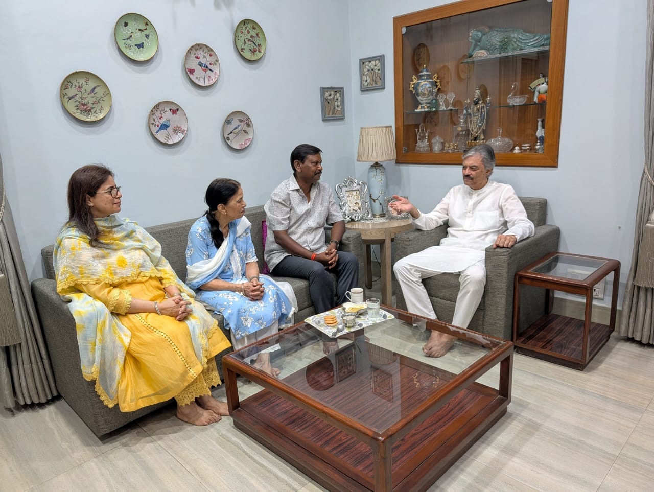 दिवंगत विजय मल्होत्रा के परिजनों से मिले पूर्व केंद्रीय मंत्री अर्जुन मुंडा