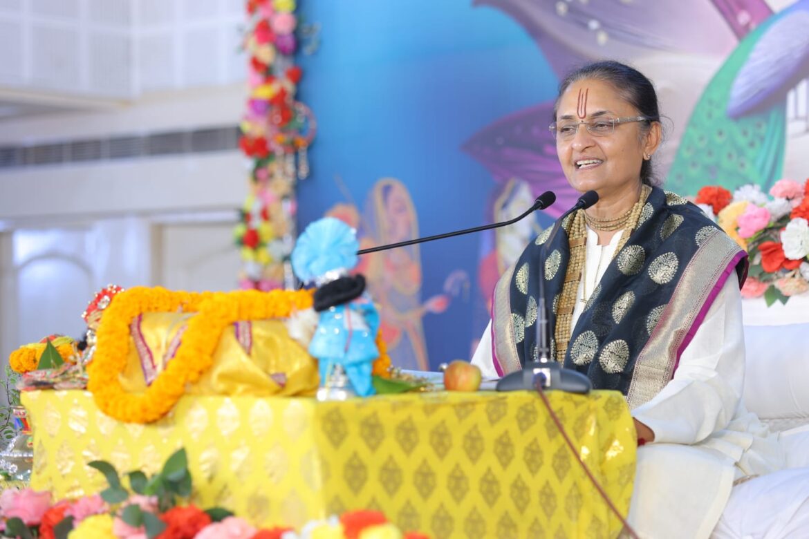 कथा के माध्यम से गुरु मां ने बताया कि कई संत ऐसे हैं जो सिर्फ श्रीमद् भागवत को अपना आराध्य मानते हैं । क्योंकि श्रीमद् भागवत कथा ही है जो हमें श्री कृष्ण से मिलाती है और श्री कृष्ण अपनी आराध्या राधा रानी के बिना अधूरे हैं इसीलिए कथा को श्रवण करने से ही हम श्री कृष्ण और राधा को पा सकते हैं। परंतु कथा को श्रवण करने के कुछ नियम है,उन नियमों का पालन करके संतों ने हरी को पा लिया। यदि हम भी सहज भाव से कथा को श्रवण करें तो हम वास्तविकता में प्रभु को समझ सकते हैं ।