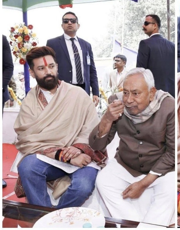 Home » चिराग के दही-चूड़ा भोज में शामिल हुए नीतीश