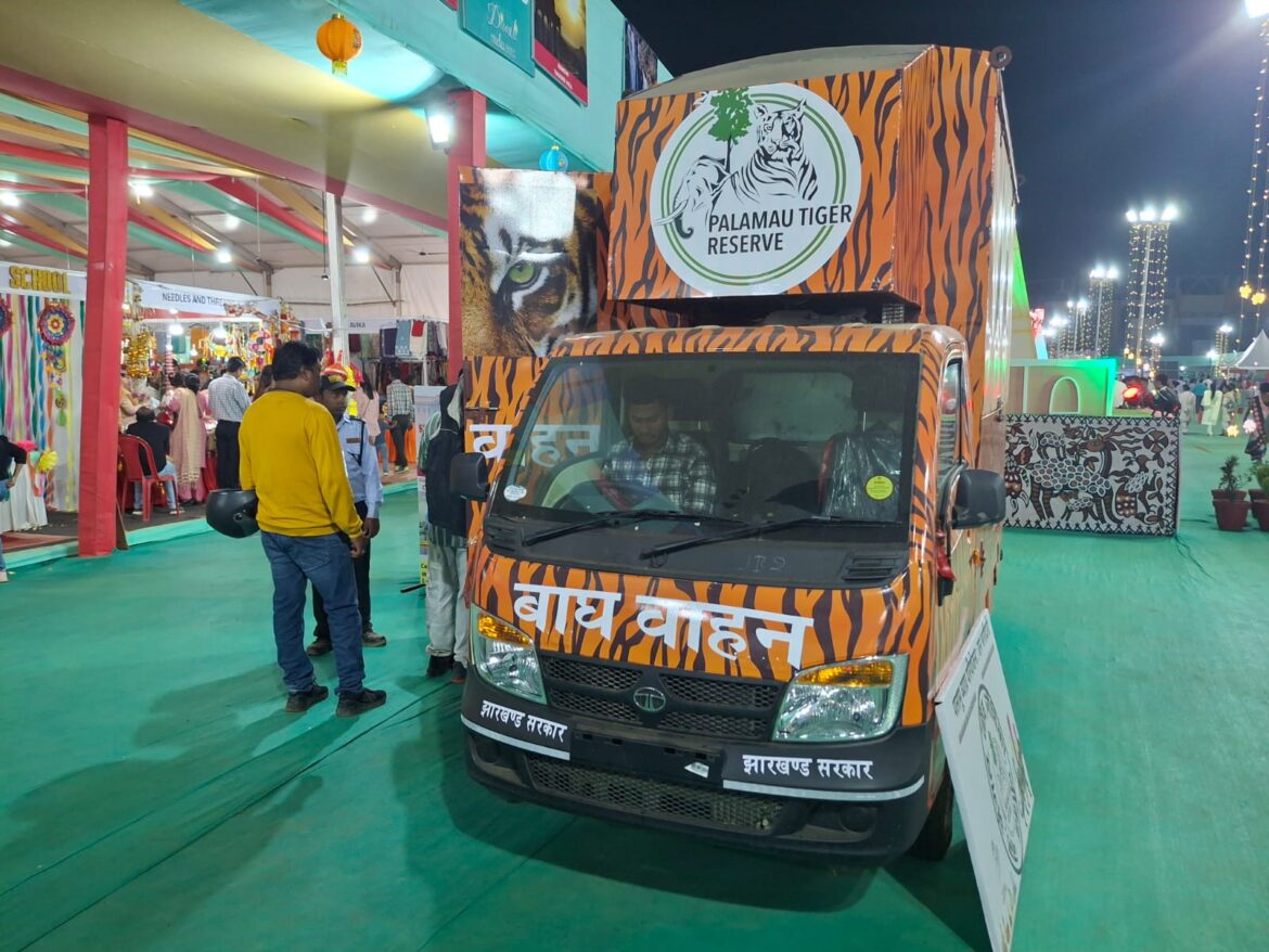 इस बाघ वाहन में जहां डॉक्यूमेंट्री के जरिये पलामू टाइगर रिजर्व की विशेषताओं को दर्शाया जा रहा था वहीं, इस वाहन में पीटीआर के सॉवेनियर जैकेट, टी-शर्ट और टोपी और कई अन्य वस्तुएं बेची जा रही थीं।