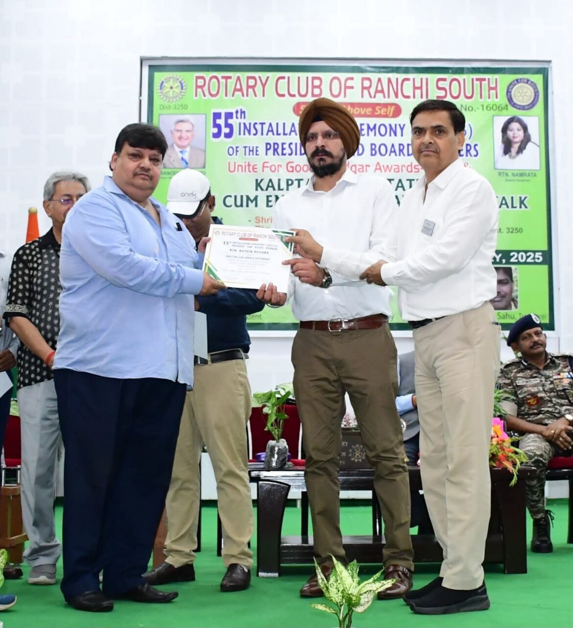 इस गरिमामयी अवसर पर मुख्य अतिथि एपीसीसीएफ (IFS) सिद्धार्थ त्रिपाठी, डीआईजी सीआरपीएफ डी.एन. लाल, और रोटरी क्लब ऑफ रांची साउथ के अध्यक्ष रोटेरियन डॉ. अरविंद विशेष रूप से उपस्थित रहे।