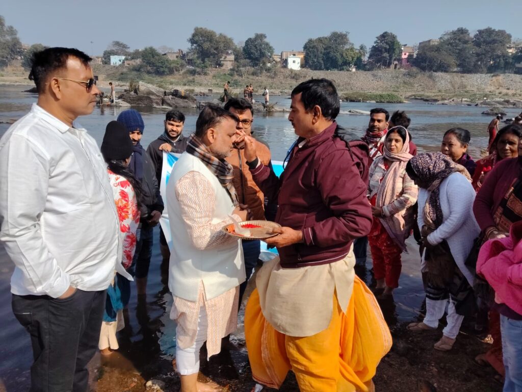 उधर, पांडेय घाट पर भी विधिवत नदी पूजन हुआ। इस मौके पर अर्जुन यादव, विजय सिंह, दिलीप प्रजापति, किशोर सिंह, सुनील सिंह, केके शर्मा, महावीर साहू, लालसा, प्रकाश पात्रो, अमृता मिश्रा, पूनम देवी, रेणु शर्मा, गोल्डन पांडेय, अनीता देवी, राजलक्ष्मी, ललित प्रधान, सौरभ चतुर्वेदी, गणेश चंद्र, गंगा प्रजापति, राजेश मुखी, मनोज सिंह उज्जैन, विनोद पांडे, रणजीत सिंह आदि मौजूद रहे।