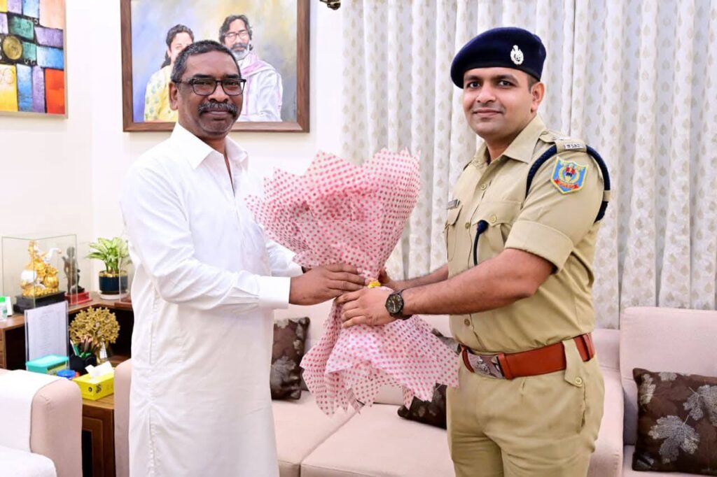 रांची : मुख्यमंत्री हेमंत सोरेन से मंगलवार को उनके आवासीय कार्यालय में रांची के एसएसपी राकेश रंजन, एसपी पारस राणा और एसपी ट्रैफिक राकेश सिंह ने मुलाकात की।