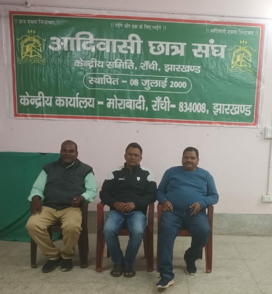 ,रांची : आदिवासी छात्र संघ की बैठक रविवार को आदिवासी छात्रावास मोरहाबादी में हुई। बैठक की अध्यक्षता प्रेम प्रकाश मिंज ने की। बैठक में निर्णय लिया गया कि आदिवासी छात्र संघ का पुनर्गठन और विस्तार किया जाएगा।