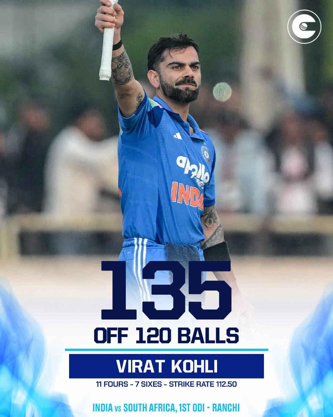 साउथ अफ्रीका के खिलाफ 30 नवंबर (रविवार) को रांची के जेएससीए इंटरनेशनल स्टेडियम कॉम्प्लेक्स में हुए मुकाबले में भारतीय टीम के दिग्गज खिलाड़ी विराट कोहली का बल्ला जमकर बोला है।